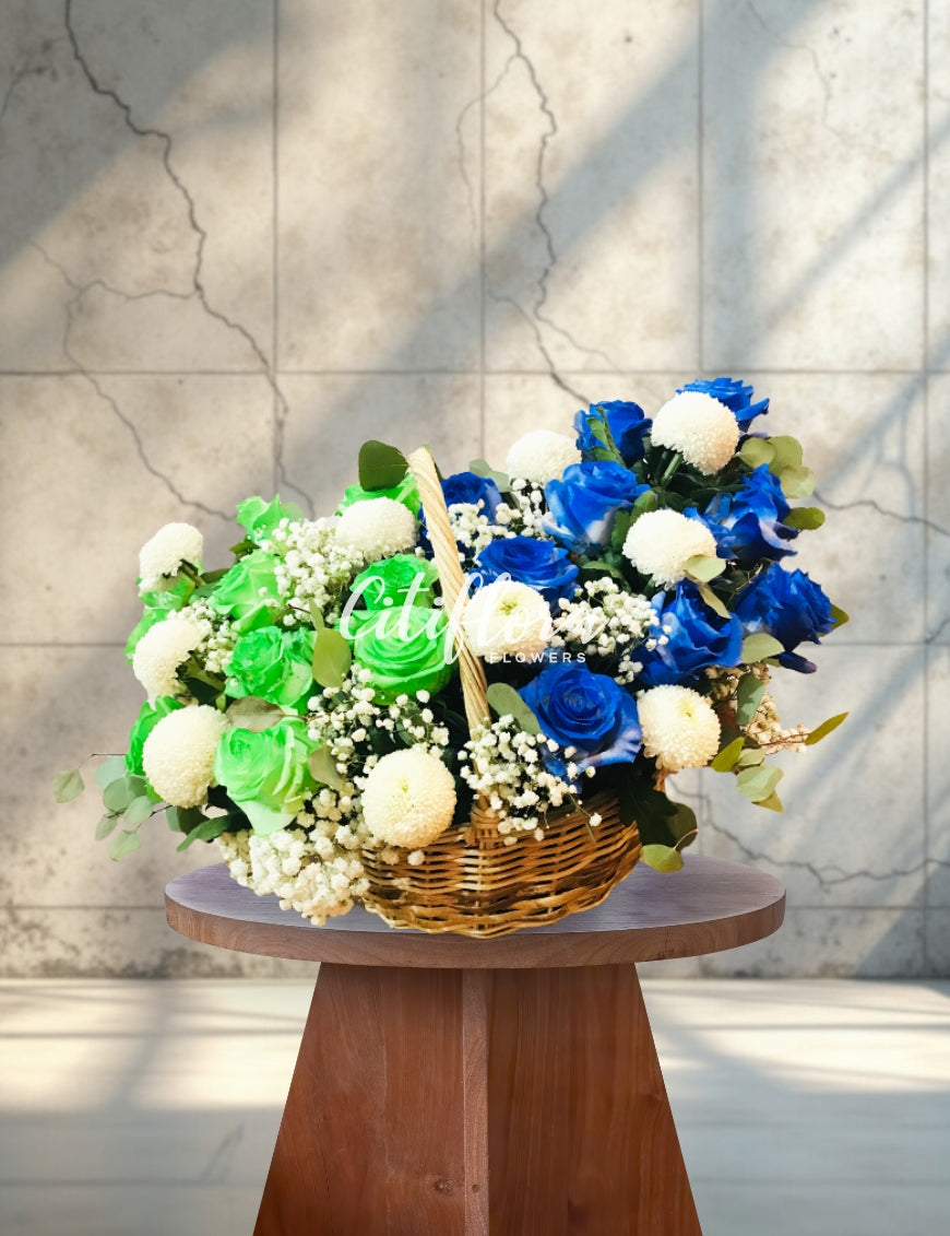 - Flowers: Blue & Green Spray Painted Bangkok Roses, Mums, Fillers