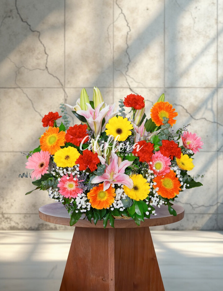 Make your loved ones' day with the gorgeous floral display of BF-20. This elegant and sophisticated basket is a perfect gift choice, available for quick delivery in Metro Manila and nearby areas. Take your gift-giving skills to the next level with this refined and one-of-a-kind selection.