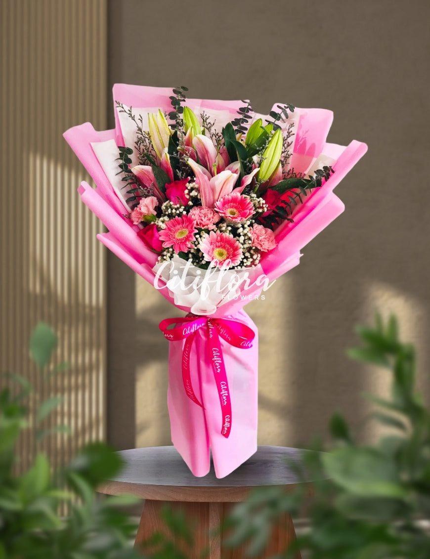 - Flowers: Pink Philippine Roses, Carnations, Gerberas, Lilies, Fillers