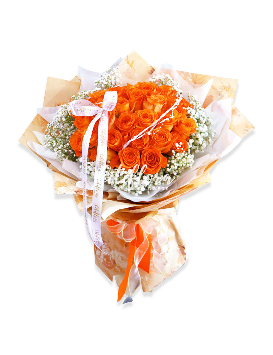 - Flowers: Orange Ecuadorian Roses, Fillers