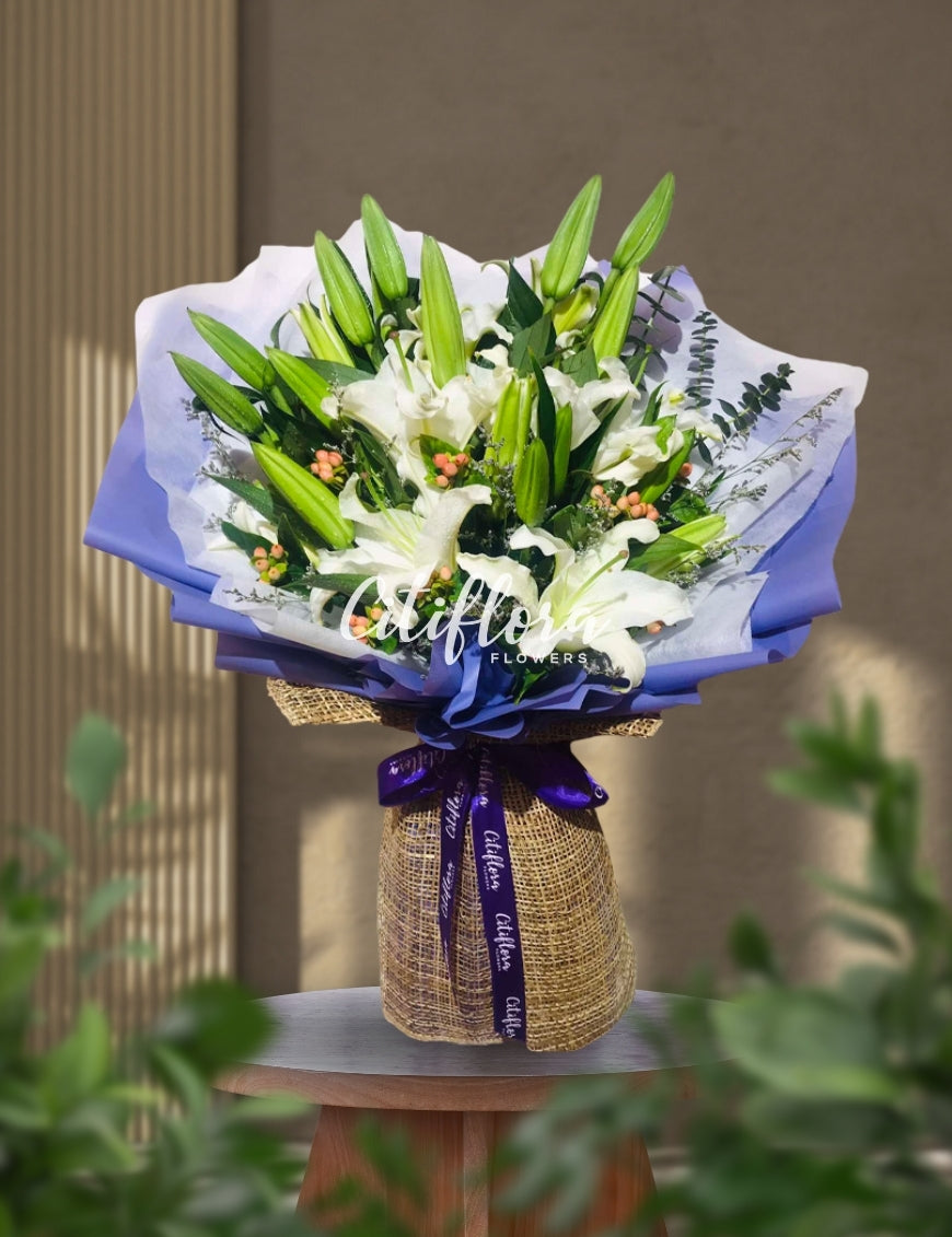 Delight your loved ones with the stunning gift of elegant, fragrant white lilies from BQT-13. Perfect for any special occasion, this bouquet will surely bring happiness and love, reflecting your genuine sentiments and admiration.