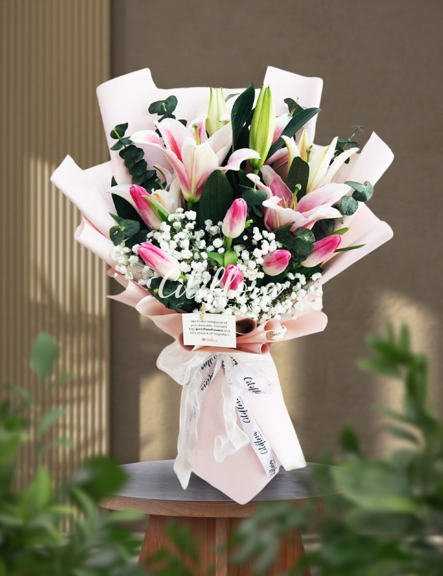 - Kindly note that each flower arrangement is handcrafted, so it may not look exactly the same as the sample photos. Variations in flowers and fillers can occur, but we ensure that the overall design and quality will remain beautiful.