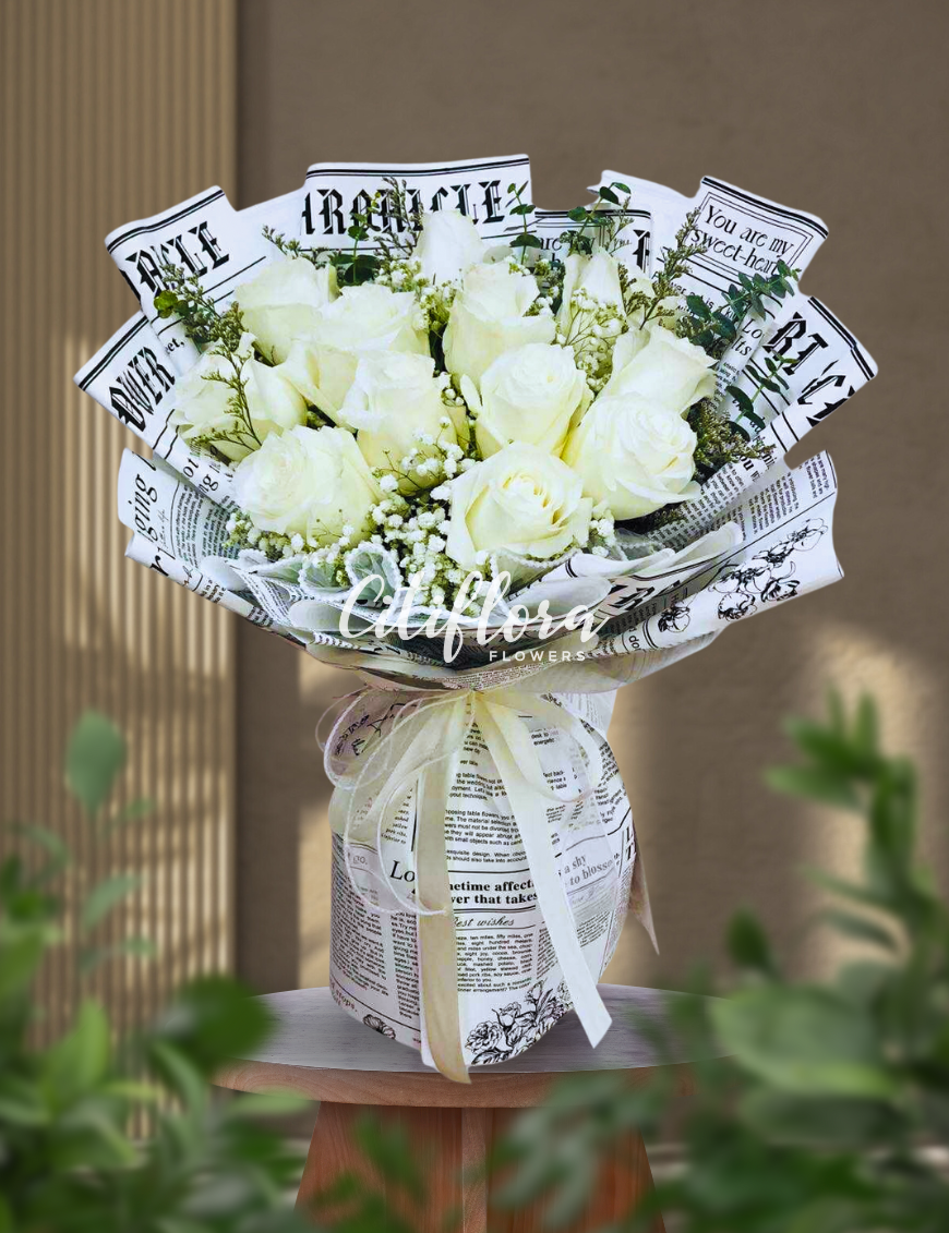 - Flowers: White Ecuadorian Roses, Fillers