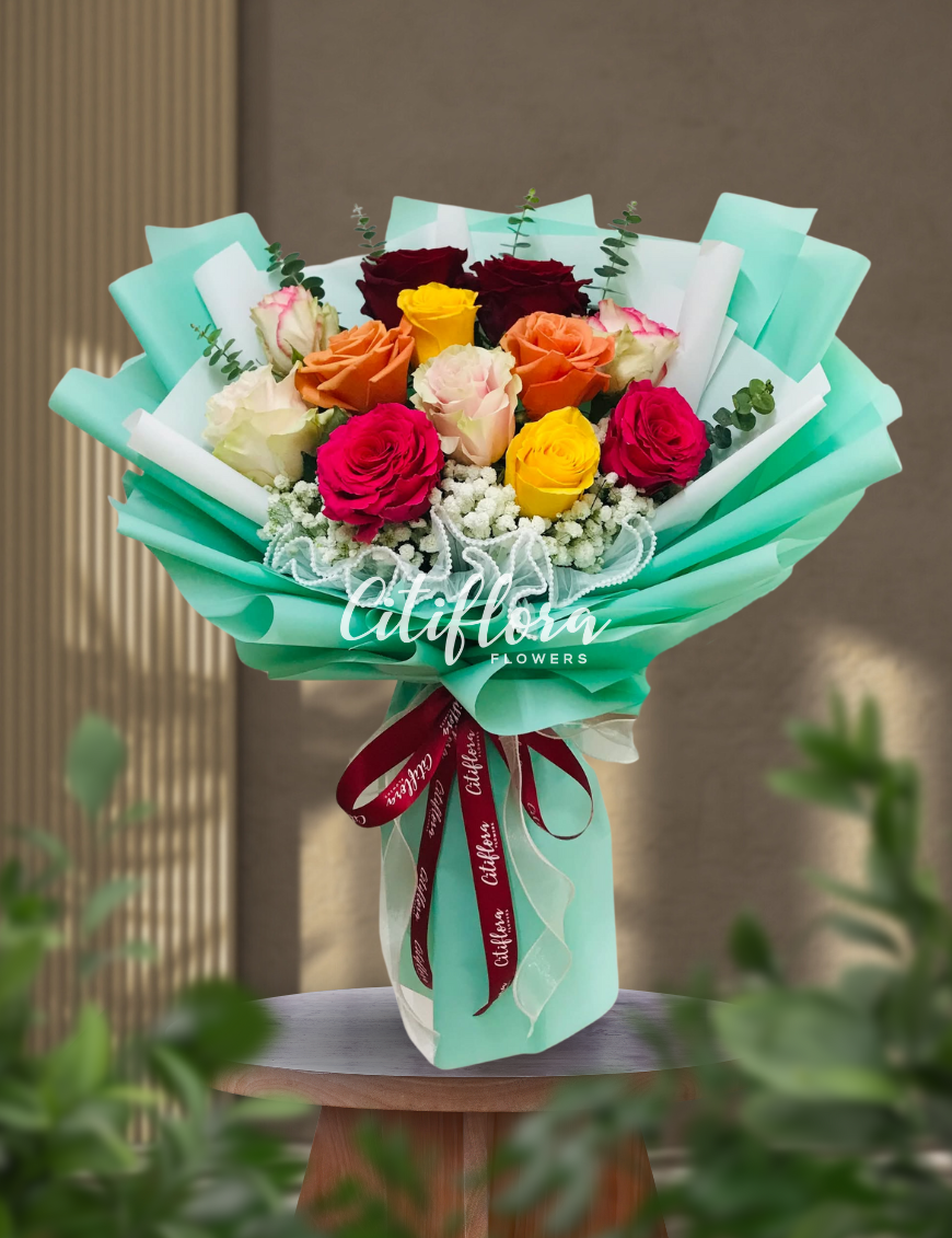 - Flowers: Mixed Ecuadorian Roses, Fillers