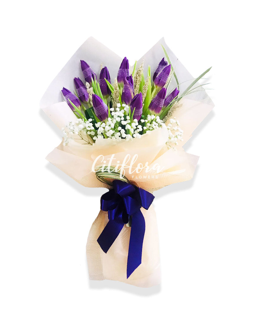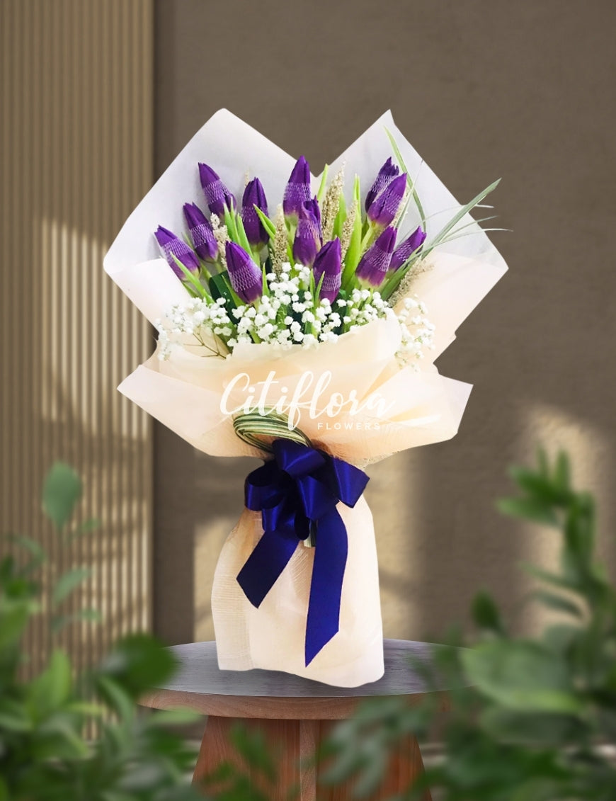 Make your loved ones feel special with a gorgeous arrangement of purple tulips from BQT-30. This stunning gift will bring happiness and love, conveying your true emotions and adoration with its delicate and aromatic flowers.
