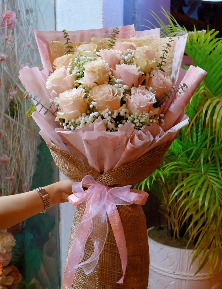 - Flowers: Pink Ecuadorian Roses, Fillers