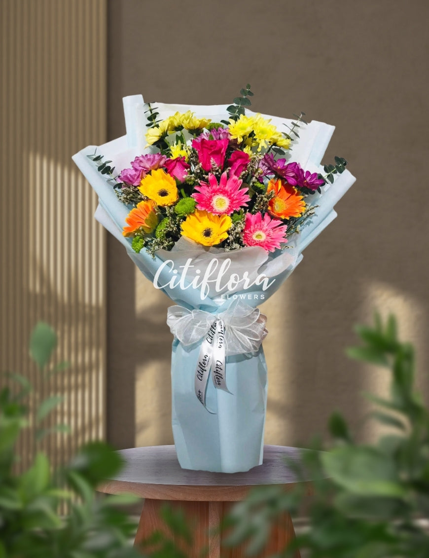 - Flowers: Pink Philippine Roses, Mixed Gerberas, Mixed Mums, Fillers