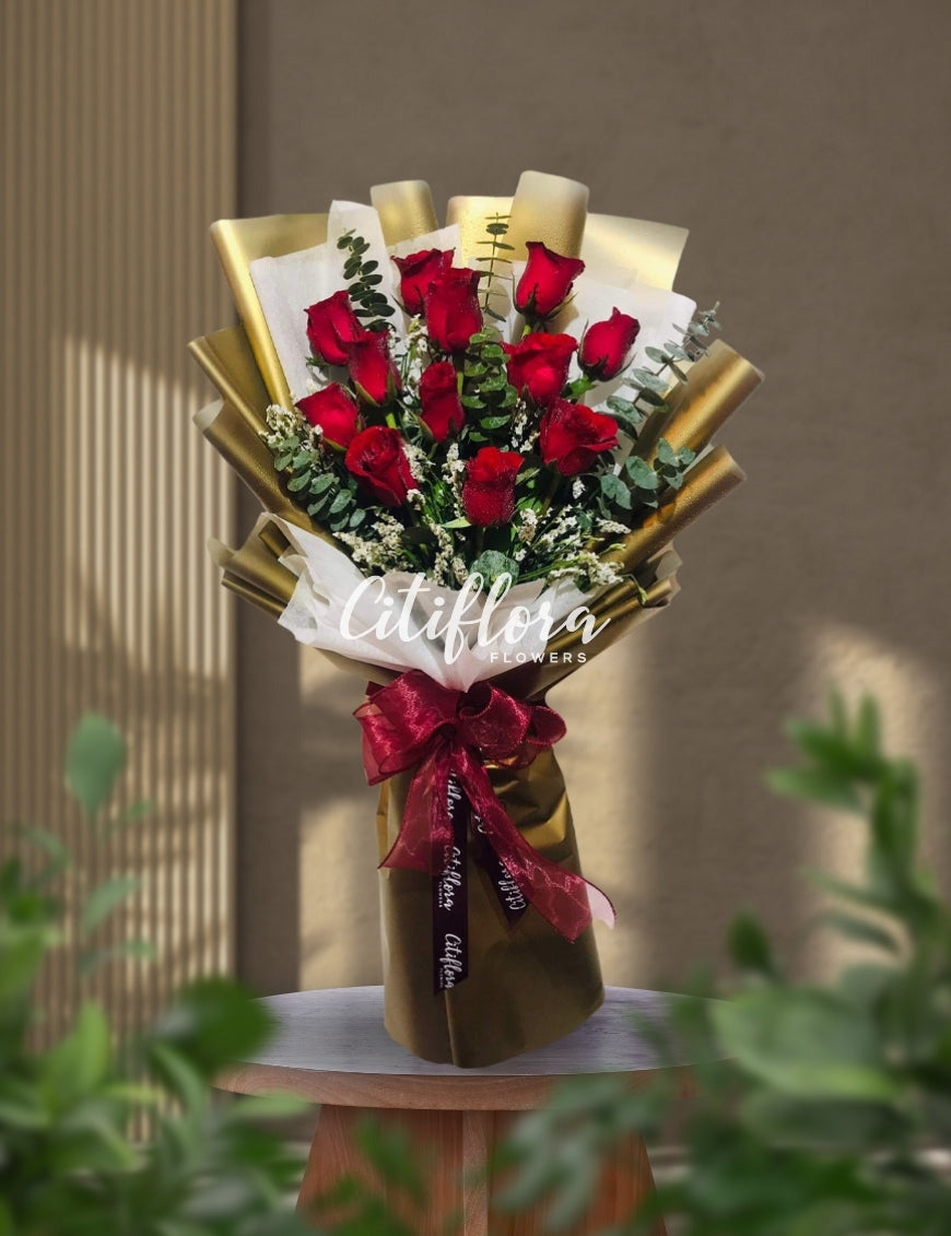 Indulge your loved ones with BQT-60 - a breathtaking arrangement of vivid red roses, ideal for any milestone. Allow these aromatic and alluring blooms to infuse their special day with love and delight. Show your love and admiration with this heartfelt and enchanting present.