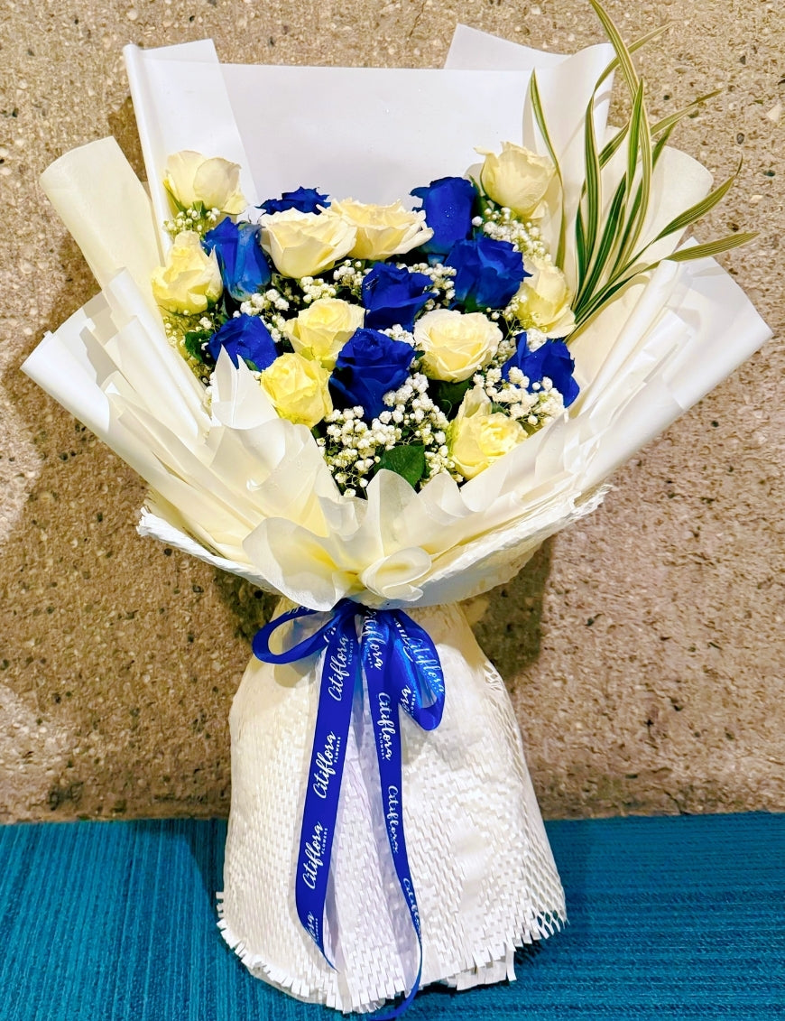 - Flowers: Blue Spray Painted Bangkok Roses, White Philippine Roses, Fillers