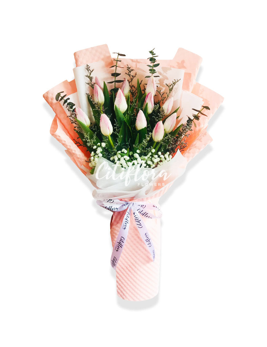 Impress your loved one with a stunning showcase of BQT-93's lively pink tulips. This exquisite gift will evoke happiness and fondness, conveying your sincere emotions through its fragrant, delicate blossoms.