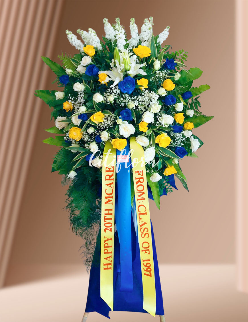 The IFL-29 offers an elegant and respectful means to send congratulations with a floral stand. With the benefit of same-day delivery across Metro Manila and surrounding areas, it serves as an ideal option for expressing heartfelt messages.