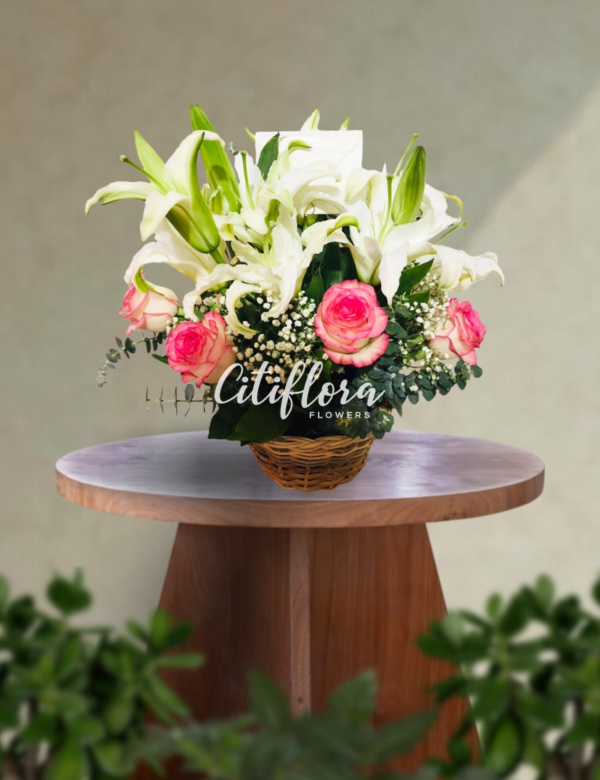 The SFB-03 offers a refined and dignified method of conveying condolences through a flower basket. With the added convenience of same day delivery in Metro Manila and neighboring provinces, it is the ideal selection for those seeking to express heartfelt sentiments.