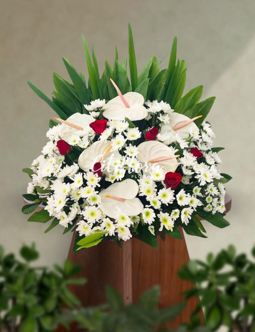 - Flowers: Philippine Roses, Mums, Anthuriums, Fillers