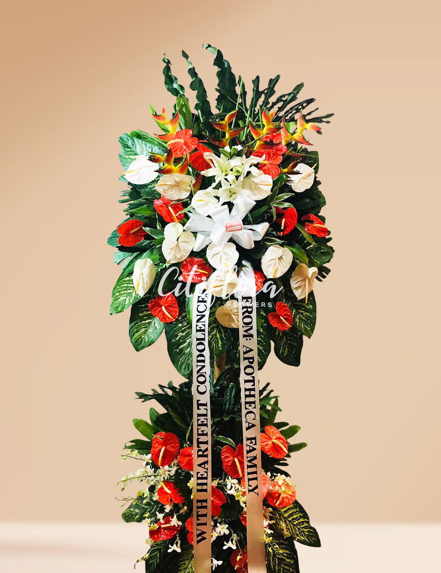 The SFL-28 offers a refined and dignified method of conveying condolences through a flower stand. With the added convenience of same day delivery in Metro Manila and neighboring provinces, it is the ideal selection for those seeking to express heartfelt sentiments.