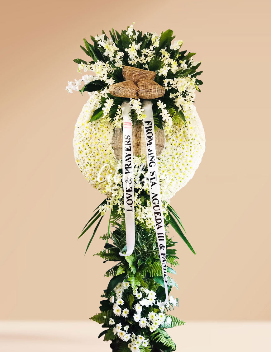 The SFW-03 offers a refined and dignified method of conveying condolences through a flower stand. With the added convenience of same day delivery in Metro Manila and neighboring provinces, it is the ideal selection for those seeking to express heartfelt sentiments.