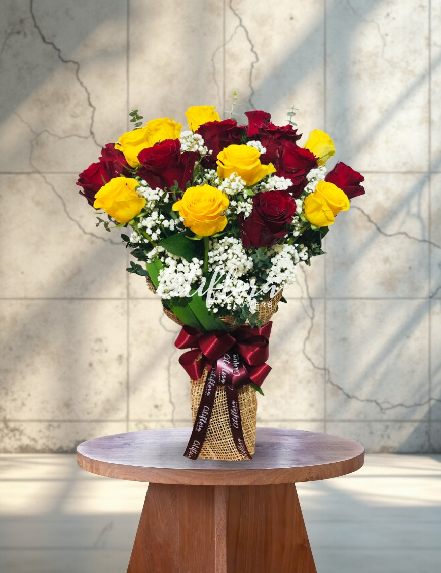 - Flowers: Red & Yellow Ecuadorian Roses, Fillers